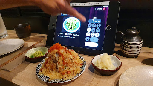 Select the specific dishes you want to order and indicate how many serves you need depending on the size of the group. When the food is ready, it is sent directly to your table via the mini bullet train. Once the dishes are removed from the bullet train on to the table, you press the button to send the train back to the kitchen. Simple and efficient.
