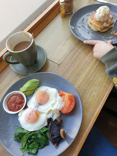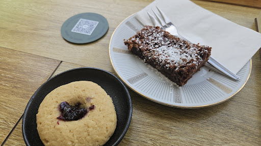 Read moreA local cafe with a smile and lovely, welcoming interiors made my Sunday so special. After a pit stop at the bookshop across the road, I treated myself to a cappuccino with soy milk, a jam-dropped biscuit, and a hazelnut brownie. All gluten-free and just the right amount of sweetness. Totally worth the bike ride for brunch! The cafe's name tells a heartwarming story of two ladies who love to serve people and bake sweet treats for all. Who knew you could pedal your way...