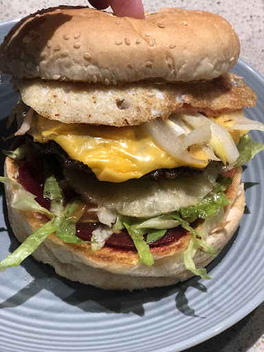 Got a Hamburger with the lot. Surprised it had pineapple and beetroot. Very tasty, not greasy....