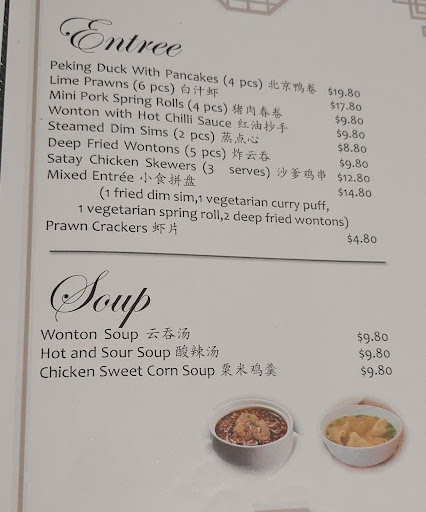 Atmosphere: This place is great if you like good Chinese food and don't care much about the ambience. It's very clean considering it's a bit on the older side (I have OCD and dust allergies so if I'm ok with a bit of antibac wiping it's fine trust me) Note the decor is alright, nothing Instagrammy or gimmicky- think muted vintage 90s to late 00's vibes, with clean toilets, space for families, older light fixtures and some Chinese art. Background music is at a decent volume, can converse privately without raising voices but doesn't hide the kitchen sounds (which aren't too loud anyways and adds to the charm a bit)