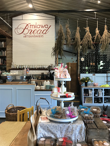 ย ย ย Read moreI loved it! The food was quirky and delicious and lived up to the gourmet regions claim. Atmosphere was 5โญ's, away from any road noise and surrounded by greenery. Tucked away behind the Milawa Cheese Factory in a row of shops including a lovely gift shop (think quality leather handbags and all sorts of other goodies). You order in the shop which is bursting at the seams with goodies and take your numbered cutler bucket to your chosen table. None of their fresh breads were on display on the racks because they're well patronised by locals and visitors alike. In the short queue I talked to a local who swore the ham & cheese baguette was addictive ๐คฃ We had the most delicious versions of the standard menu items: a Benedict that had pulled pork and a polenta cake base; and a chili scrambled eggs in a croissant! ๐คฏ๐คฉ Coffee and Hot Chocolate were both delicious too. We sat on the open courtyard in the shade of trees on a hot day and loved looking back at the massive covered area full of eclectic seating areas and plants of all shapes & sizes, all draped in hanging vines for more shade. Staff were friendly and helpful but maybe a little short handed? It didn't impact our experience but they were definitely very busy. I would love to come back and I especially plan to with our...