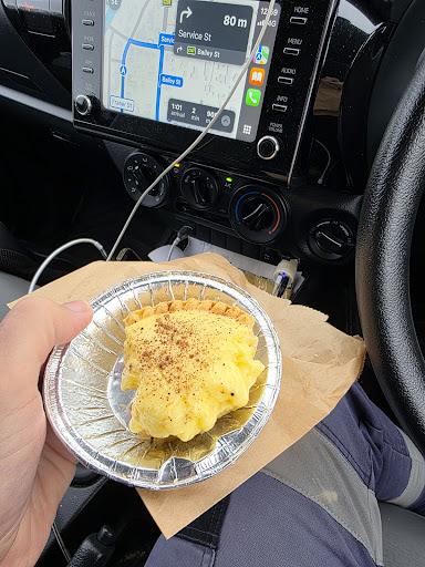 Read moreHad a late lunch here and we tried 3 different pies. All really delicious with a wonderful crusty pastry on top and delicious tender meats inside. We tried the pepper, curry and beef and bacon pies, all yum. Seating inside or outside the store. Lovely lady there running things who makes the pies herself. Nice selection of cakes, I enjoyed the perennial favourite, "Snot Block" or Vanilla Slice. Smooth custard and just enough icing. Coffees...