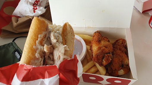 I'd just like to say This was the WORST FOOD I have EVER Eaten. The Rooster Roll I Got was Absolutely disgusting. Im guessing it is frozen & zapped in the microwave, as it was so floppy i couldnt even hold it in my hand, I tore open the bag & scraped the contents off the paper to eat it. The service was Appalling. The young man that served us did not even make eye contact! When he spoke he looked down at the counter & you could barely hear what he was mumbling! The table we sat at was putrid. It was NOT busy at the time we were there & I dont think there was any excuse for the tables not to be cleaned. When i asked the young man at the counter if he knew if the Rooster Rolls were frozen? he had no idea, but he said "They might be" I told him it was the worst thing ive ever eaten & he told me He didnt like them either!!!!! I asked if the picture up on the board was of the rooster roll & he said No, that was a chicken & gravy roll & that a rooster roll only has chicken & mayo. It was the BLANDEST THING I Have Ever Seen. Suffice to say I Would Never Step Back Inside a "RED ROOSTER" Establishment EVER AGAIN!!! A Refund would be great!!! The ONLY Reason i have given a 1 star; Is is the lowest available! Sad But True!! My husband was very unimpressed with his Mega Box? (I cant remember what it was called, but it was a squishy burger, crispy strip, which was like a frozen packet chicken tender, chips, gravy & drink) So About $22...