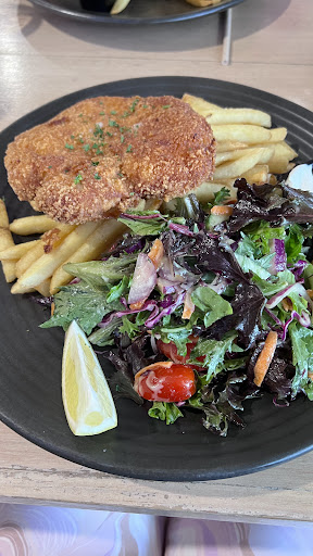 Ā Ā Ā Read moreWhat a delightful cafe, with bright cute decor and an array of pretty cups and saucers. Meals; Tuesday is Parmi night, soā¦..Hubby had Parmi w/chips and I had gluten-free Chicken schnitzel w/chips and salad (one of the best salads Iāve had for a long time) and the meals are huge! I was also happily relieved to see the GF crumbs were made from bread, not rice crumbs like a lot of places. Very tasty indeed. A loud shoutout to the staff, they were super friendly, attentive and alert from the time we arrived until we leftā¦.Wonderful table service. It was also nice at the end of the meal to be asked if we would like to order tea/coffee or dessert. They also have a delicious looking High Tea menu. Note: Celiacs and Intolerant GF people thereās quite a variety of GF meals on the menu šš» They are open everyday, and from Tuesday to Saturday they are open until 10pm for dinner, or a late night coffee and snack.