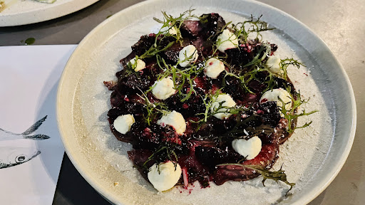 The entrées were definitely the highlight, each served in sharing portions perfect for two. The sardine fillet was a rare treat—paired with sour onion and grapes, it brought a refreshing balance of flavors I usually only associate with kingfish. The kangaroo carpaccio was another standout; though kangaroo can be fibrous, slicing it thinly made it work beautifully, and the horseradish added a clean, sharp finish.