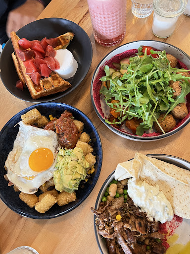 Visited this highly rated local cafe on our back to Melbourne after a long weekend! This place is definitely a hidden gem. For the four of us, we ordered Mexican hash, lamb giro with pita bread, falafel bowl and sweet waffle. My favourite has to go the lamb giro! Oh man the meat was perfectly cooked, you could taste the flame in the meat. Paired with the pita bread, sour cream and the various beans, it sent me to cloud nine đŻđŻđŻ Close second was the Mexican hash which had all the goods you want for breakfast; potato gems, avo, fried egg sand salsa. Falafel bowl and sweet waffles are good too.