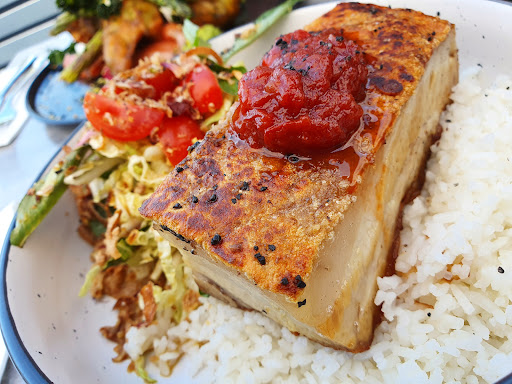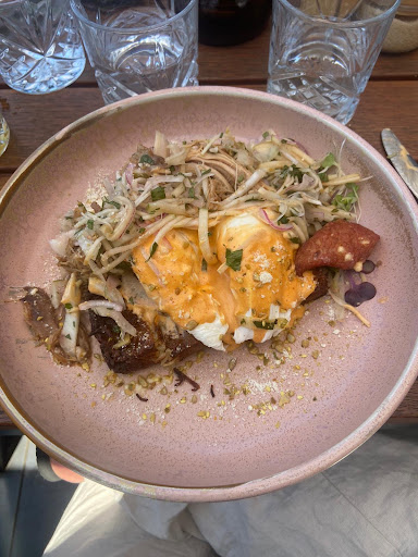 I went to this Cafe around midday on a Saturday and it was fantastic. The staff were very busy but still attended to getting us a table as soon as we entered the door. They were very friendly and helpful, having many good interactions with various tables around us. As it was busy, there was a little bit of a wait for our food, but it was well worth it! I ordered a brunch bowl and my partner ordered a chicken sando. The prices at first seemed a little much, but upon the food arriving at the table, it became justifiable. Both dishes were presented wonderfully, with a large array of fresh ingredients included in both. The food tasted delicious and was cooked to perfection. The amount of good on the plates too was amazing! This made the price seem reasonable after eating, as it was a large serve for both the brunch bowl and the chicken sando. Upon leaving, we purchased a raspberry blondie and that was amazing too. It tasted homemade and was rich in flavour, while looking very appetising too. The price on this was also very reasonable for its quality. This Cafe had a lovely atmosphere, being small in size, but designed in such a way that it didn't feel cramped or claustrophobic. There was the option to sit inside or outside too, which was lovely.