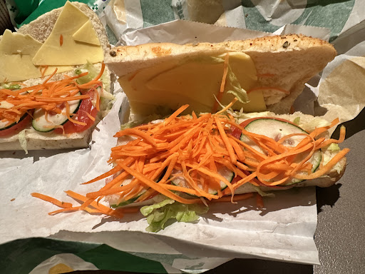 Terrible Subway! Incredibly expensive compared to other franchises and very poor service for the following reasons: I ordered two footlong subs and there was basically a 6-inch worth of cheese provided so I asked the server to please cover the length of the footlong. The server decided to charge me for extra cheese without telling me (I only realised after the payment was made because I took a copy of the tax invoice without them noticing). If youâre going to charge extra for something that shouldâve been done correctly in the first place, you should be upfront with the customer. Secondly, they put hardly any salads on the subs. I had to ask multiple times for extra salad and this was still under the minimum quantity compared to other Subways. Thirdly, they charged for a footlong worth of extra meat when I specifically requested a 6-inch worth of salami (again, I only realised after payment was made when reading the tax invoice). Fourthly, they are not upfront at the register when entering in the items and just slap you with the price. Fifthly, it is rude to sweep the floor underneath the table where people are eating (especially when it is not their mess and from the previous customer). Common courtesy is to wait until people have finished eating and to do it when the table is vacant. I hope the service picks-up after this shocker experience and that the two workers learn a...