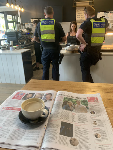 Ā Ā Ā Read moreCannot rate the food as I only had a Soy Flat White coffee. The coffee? EXCELLENT! (Made with Bonsoy milk - the best by far!). Very friendly owner and staff. Will visit again soon to indulge the food side. Met good friends as I was about to leave to e-bicycle back to Kialla so chatted and they mentioned they were regulars at this cafe. Even the local cops know itās a good place (as in photo)....