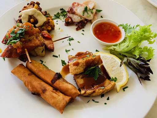 The Tapas probably should be avoided if you are hungry. It's a miniscule serve (2 tiny spring rolls or 2 tiny pieces of pork). The most tasty Tapas were the Chorizo and scallop skewers. The Tapas are way overpriced for what is provided (picture is a $30 plate). Presentation was fine.
