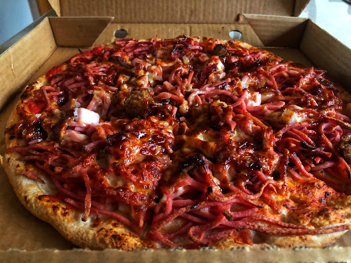So my usual take away place is closed for a break and once again I chose Google Maps to lead me to my dinner and try somewhere new đ I didnât know what I wanted to eat but you canât go wrong with pizza, given the variety of toppings and this place has heaps to pick from. I ended up choosing a Meat Lovers style pizza, while it didnât disappoint, it was rather âhammyâ and hard to distinguish the other meats but tasty just the same đ Priced at $14 for a large pizza, seems really reasonable to me. Didnât have to wait long either, even though there were plenty of orders coming in. Awesome relaxed and friendly vibe. Iâll definitely be back to try some of the other pizzas from their extensive menu.