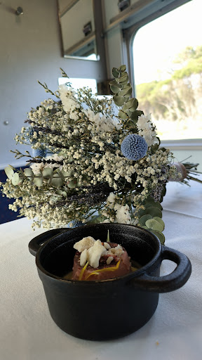 It does not surprise me going to a venue rated mainly 5 stars and then finding out it's a 2, or 3 at best. What really saddens is the ongoing confirmation that the great majority of people who gives such high ratings have probably a rather limited experience in fine dining, or "casual fine dining", as the Q Train defines itself. My experience in First Class has been disappointing. The major flaws have been the micro-portions, which extended to the first three wines (see the picture of one), promoted as 'half glasses' but in reality a few millilitres. Then two dirty spoons, the pork (Barongarook) which was almost a block of salt (everyone can make mistakes chef, but why serving them?), a tragicomic tiny (like 8 cm long) tin of sardines with two bites of fish and two (my partner one) mussels (Portarlington Dory, with mussels, saffron and Samphire) cooked in the tin, or I should say, overcooked in the tin, as the micro-fish Dory was dry as cork and the flavour was uncertain and leaning towards the capsicum. The beef rib (Short Rib, beef, onion, charcoal and Tarragon) was again roughly 8 cm and a small square block, 5 cm thick. I am sure, as I have heard saying later by one tourist, people would ecstatically say that it was "so tender", but it might have been made in the way semi fast-foods like Ribs&Burgers do it: first boiled and then grilled. Nothing special, nothing "casual fine dining", but just a trick of the trade. The first course was nice because of the idea of the QTrain Picnic Basket, with good, (but again micro-dosed) pickled and roasted baby cauliflowers (but in a picture in the website their jug is almost full!!) and a bit diluted but decent cauliflower little soup. The dessert, Wattle Grove (pear, fennel, honey) was instead the only really good food of all our lunch. The harmony of the ingredients, their consistency, variety and presentation was superb. Difficult to think it's the same chef... But anyway it was 5 stars. And also the wines were very good, for those fractions of a second I had the time to taste them, considering their drops quantity. Besides, the scenery is flat and uninteresting, except when close to Queenscliff, where the marsh adds some beauty. The food is served as it was the result of such high cuisine alchemies to be almost a jewel, as in some 3 Michelin stars restaurants. But it's nothing like that. Our waiter was very kind and did his best. Overall, it was a nice experience: the train, being in a cosy (although pretentiously but not qualitatively refurbished) very small compartment. But NOT the food. Maybe change kitchen management and serving policies? And give realistic portions, pour more wine, and if you want to be real "fine dining", make an effort of distinguishing between provincial taste's satisfaction (nothing 'bad' per se) and true haute cuisine research. ADDED AFTER OWNER'S RESPONSE Dear Owner of the Q-Train (Michael? Andrew? Robin?), you're very welcome. It is in the nature and purpose of reviews to inform other potential customers of what one's experience has been, subjectively intended, of course. That's the spirit. More specifically, I can confirm the first three wines were not 100 ml. And I can also confirm that the quality of the food was not what should be generally expected from a 'fine dining' experience (except the dessert) and again stress that there are reasonably small portions and not reasonable ones, with the latter category applying to what we have been served. I also wish to warn everyone about Master Chef mentions or any award, because today it is mainly appearance and smoke in your eyes. What counts is one's own experience, and mine might not be within the chorus of all your enthusiastic 5 stars, but as far as I am concerned it is honest. So you may be proud, and why not, I think you should: the Q-Train is a nice idea, truly. But as a restaurant, not a train, aiming to the highest rating, there is certainly a great space for improvement. All the best for your...