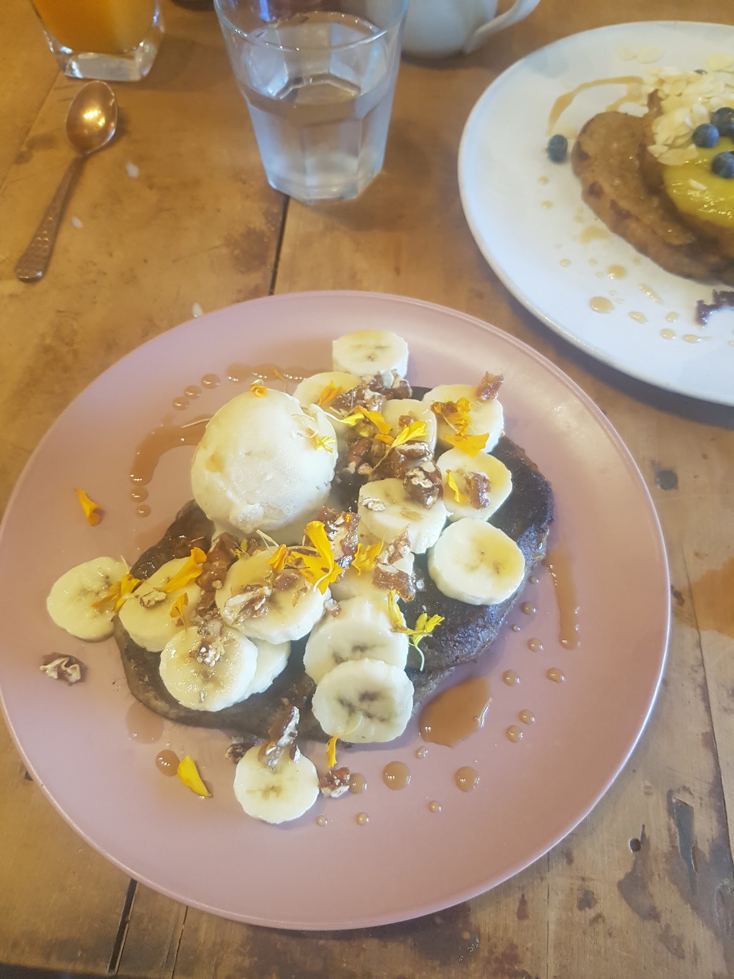 Wow! This place is me to a tee! I love pink, rustic and pretty, and this place had it all! I just couldn't stop looking at everything. Then there was the food. I had a tough choice between the banana buckwheat pancakes, vanilla waffles and French toast. (Heaps more, but they're the ones I wanted.) I went with pancakes. They looked so pretty and were yummy. Not too sweet which was perfect. Dad went with the French toast which was also delicious! My brother just had spelt sour dough toast with jam and butter and my mum had a hashbrown which was very tasty with relish. Presentation of all the food was beautiful! I was impressed with the metal straws. Even the toilets were pretty! (See photos) There were a few things for sale and I loved that they had set up some boomerang bags for people to borrow and return. The only thing I didn't like was my mug for my chai tea. I didn't like the handle as there was no hole to put your fingers through, and it was unglazed pottery. I hate the feeling of unglazed pottery. But I got over it! Definitely...