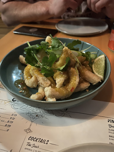 From that point things went down hill, the lamb ribs were extremely fatty and not rendered down at all, I had to scrape off the mushy fat to be able to eat them and there was very little actual meat. I ate 2 of the 4 ribs and left the rest. Next we had a new waitress who had lighter hair that was in an updo come by and ask if we were enjoying everything and I explained the flavours on the lamb were really nice but I wasn't enjoying it purely because it was so incredibly fatty she said "oh ok" and walked away. Why ask if you don't want to know? I also asked for a glass of sparkling water to wash the fat down and she said would I like a bottle of capi and I said no soda water is fine, at the end of the meal I realised they had charged me $5 for soda tap sparkling had this been explained I would have had the bloody capi.
