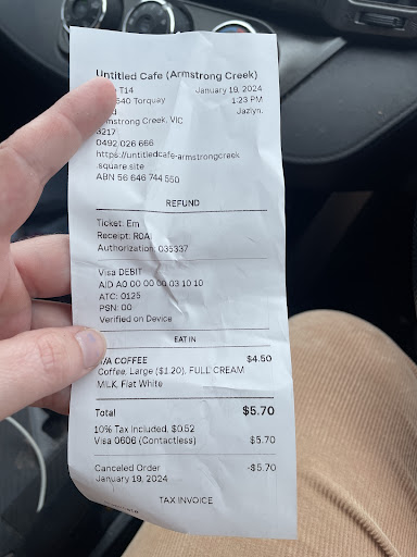 Read moreWent here last week as we always have good coffee and service with the Untitled cafe near South Geelong Farmers market. First, we were given chaii when we both ordered flat white. Great of them to replace it quickly. Then, no substitutions allowed for bacon. Which again if its a new cafe, we understand. The poached eggs were overcooked which we can overlook. But what really surprised us was when my partner's order came and it didn't have the baked beans. I asked about it, thinking they mightve just forgotten only to be told directly "we don't have baked beans". No apologies, no nothing. Its understandable if they had at least told us that they didn't have it before we ordered or the menu had a sticker on it saying that. But to not even have a simple, "oh sorry we forgot to tell u we don't have baked beans". Really disappointed in...