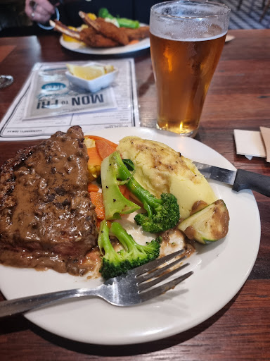 Read moreVery "Home" style type of meal for the price. Ordered a Riverina black Angus steak Medium rare, and it came out medium. Was still very tender though! Paying $40, I would expect the steak to be on point. Veggies were fresh, mash potatoes were great, but sauce was some powdered gloopy mess, with some pickled green peppercorns added to it. Did not do the beautiful, but over cooked steak justice. Very basic service here. My guest had the lamb cutlets, lamb was very tender, but too much oil on the outside. Maybe fryer not turned up to the right temperature?