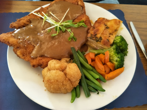 I have to say when I walked it didn't have much going for it. Well it's true never judge a book by its cover. I think her name was Annette in the front bar was great. Very friendly and insightful. Told us the history of the hotel and the ghost in room 11. It was quiet, but the atmosphere was perfect. Simple counter pub meal. Chicken Schnitzel and chips. When it came out, it didn't look special. Nothing to write home about. It looked like every other Schnitzel I have had in the past. Well I was wrong. It was juicy, full of flavour and the gravy was perfect as well. The chips might looked undercooked but they were not. It's because the oil was clean and not old and dirty. At the end of the meal she came back over to us and provided a tip on places to go. The whole experience was worth my 5 stars. We are already talking...