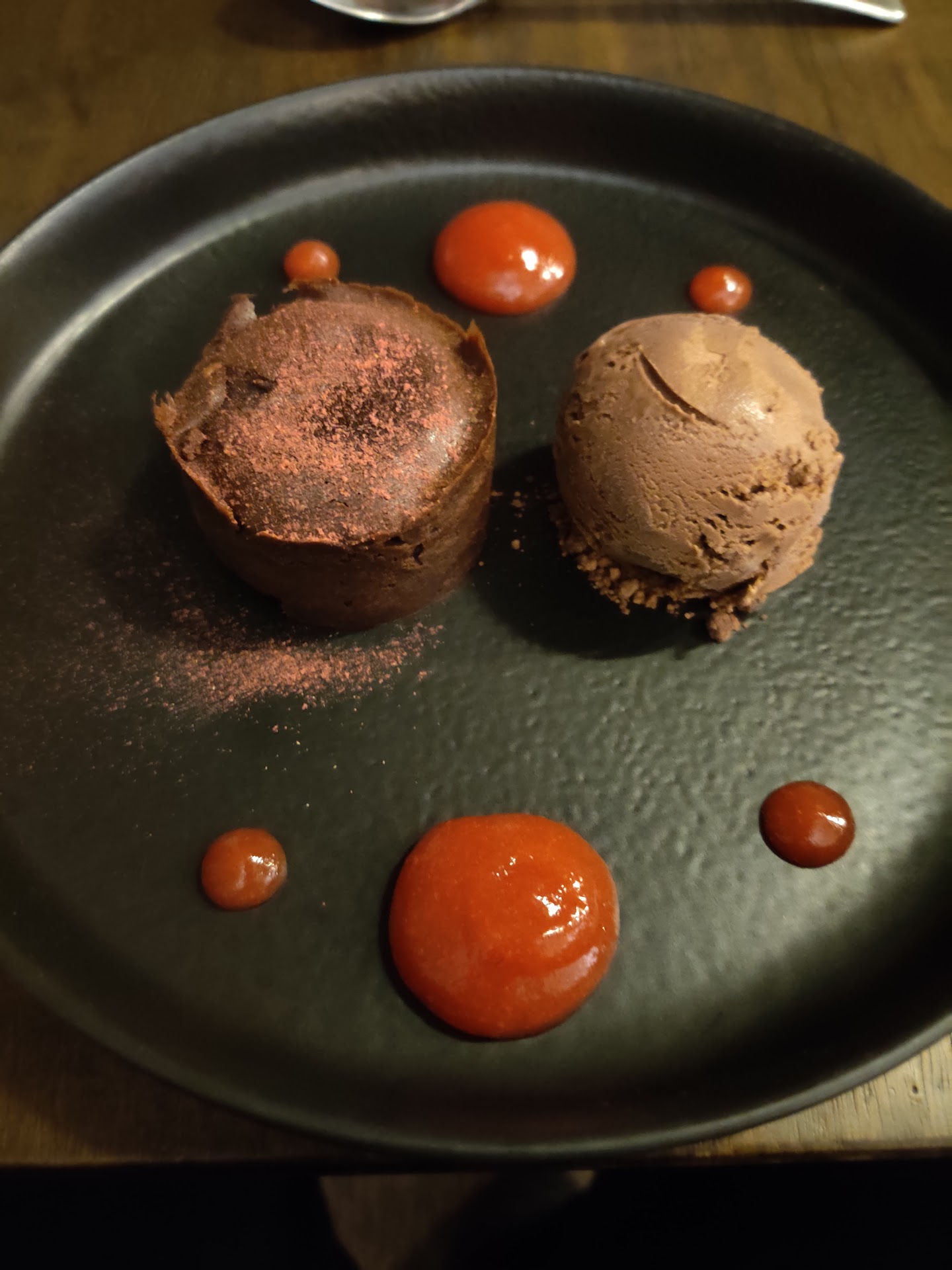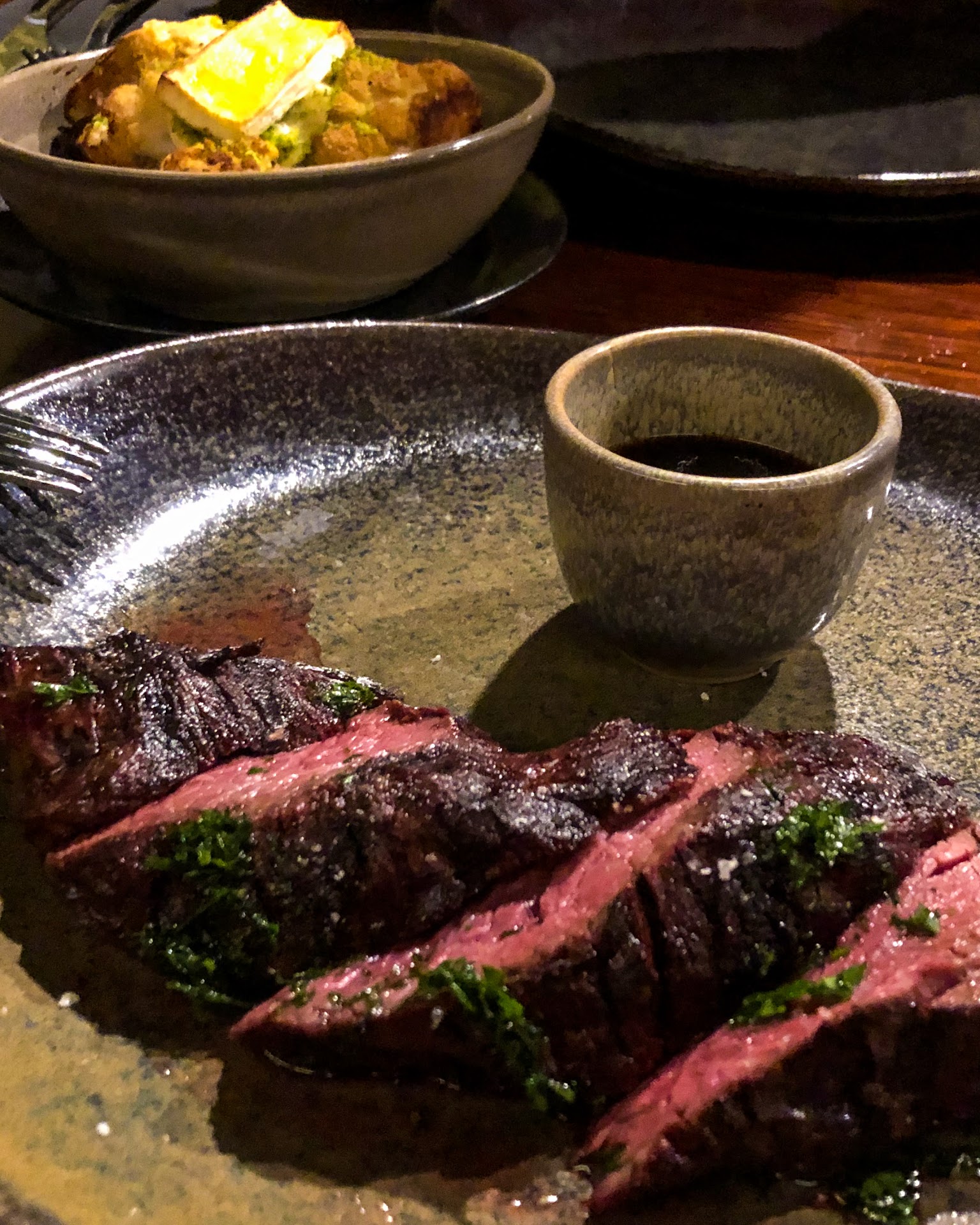 We then shared the Aged Rib Eye. It was 800 grams apparently, designed for 2 people. Now it is important to consider that while 400 grams each seems like a lot of food, in practice it wasn't. I guess to do with bone weight and whatever. We got medium rare. It was perfectly cooked and astonishingly tender. They don't even bother with steak knives they are that confident. The aged flavors are very interesting, somewhere between mild musk and elements of jerky notes. Excellent. Charcoal taste comes through very well.