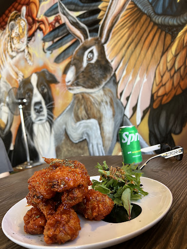 The setting is casual, with cool wall art adding personality. A quirky popcorn machine sits in the corner—sadly out of order during our visit. Orders are taken at the counter, and the staff are super friendly, working hard in the kitchen.