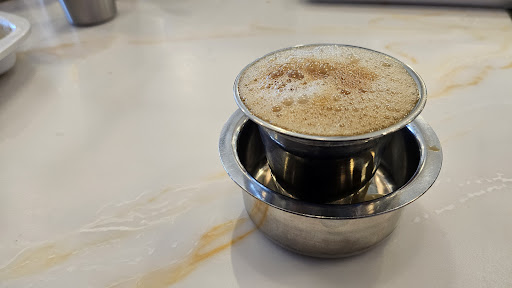 Read moreMy wife and me visited this place on Saturday evening. Wanted to eat dosa and thought of giving this place a try. The place is well lit, spacious and an abundance of staff. Having worked in hospitality for the last 25 years, this part was a pleasant surprise. The food was all right. It is not something that will make you want to go there another time to sample the food. But it was nice. The dosa came accompanied by a couple of chutneys and a sambar. The filling was, again OK. After finishing the meal, we sat around talking and that is when I saw something that was absolutely shocking. The kitchen pass, the window into which the cooks prepare the meal and place into for the service staff to take away, is a bit high. Around shoulder height. I saw the cook place two plates of, dosas or something similar on the pass. One person approached the pass to pick it up. As I was watching I did not realise this person was a service staff. All of the service staff was wearing hair nets. This person approaches the pass, looks at the docket and the order. Another person standing behind this first person, then leans forward and picks up a dosa from one of the plates and transfers it to the second one. The second person was also not wearing a hair net, so could not have been a service staff. She had been standing by the pass and was busy on the phone for a while before doing this. I would have hated to have been the person who received and had to consume that order. Why are non-kitchen staff handling the food? Even if they are why aren't they wearing any PPE? Both of us are pretty sure that this is the last time we...
