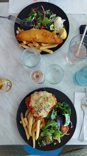 Read moreAlmost a slapstick production of Fawlty Towers proportions. The queue to order was expected for lunchtime but the banter from the host with each and every person ordering was charming yet unnecessary. I wanted to get back to my table to chat with family and friends, I understand my meal will not come quicker but why go to a seaside cafe for the view and but stand in a queue? Several times while waiting, the host berated staff for mistakes openly. I made my order and was asked if I would like the entree first and I said, ''yes thank you.'' Within 6 minutes, my order came. My order , garlic bread, porterhouse with mushroom sauce and a banana milkshake. I asked if it was correct as I ordered garlic sauce on my scotch fillet. The staff member smiled saying yes and took off. It irks me when a table doesn't get their food so it may be eaten together but we ate the garlic bread and chips before after 15 minutes the host came to the table asking why I had my meal, the people round us who ordered before me didn't have theirs yet and neither did the rest of our table. The host apologised and asked how my steak was. I said it's ok, she said I would receive a refund and took off. 10 minutes or so later, everybody had their food and I had learned my steak was dry and stringy and way past medium rare. Just as we were about to leave, all our meals showed up again. The staff member looked at us, turned and left with the meals in her possession. No words were had as I did not wish to engage the host so no refund was received, sadly I will not return to what is a lovely location but not worthy of the...