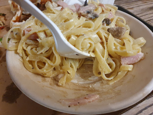 Pizza was nice, staff were friendly, but its all down hill from there. Without Prejudice: Before driving to the restaurant, we looked up the online menu, which said it had lasagne, but upon arrival was told they don't do it anymore. My wife chose something else (pasta) and I chose a pizza. After 15 mins my name was called to collect our food, only to be told they forgot to make the pasta. They offered to make it, saying it would only take 5mins. The pizza was nice, but when they brought out the rushed pasta, it had no flavour, no sauce, the bacon looked very pink and undercooked and was truly inedible. The wife had a few mouthfuls but we politely took it back, and the manager was very apologetic and offered us a refund. As it was very busy, we had limited choices to sit outside the restaurant, and the only table was next to a rubbish bin. This was less than ideal as the bin smell was not enjoyable and was extremely full, meaning everyone who used the bin and lifted the lid, exposed us to the smell inside We also noticed cockroaches running around outside near our table....while this has nothing to do with this business and is not a representation of its hygiene, it added to our less than ideal dinning experience. This business and all the others renting space here, should ensure centre management fixes this sooner...