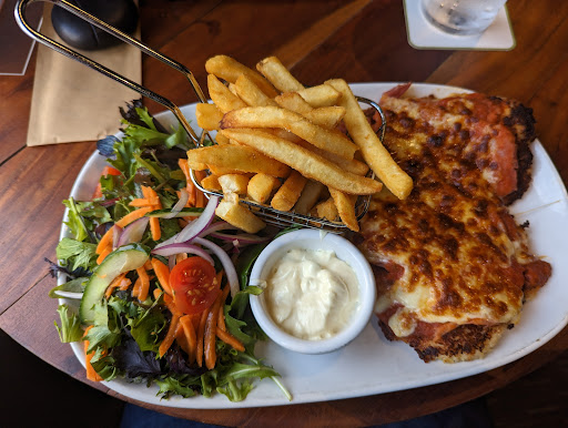 The Broken Hill Hotel offered a satisfying dining experience marked by large portions, a friendly atmosphere, and a unique touch to the classic Chicken Parmigiana.