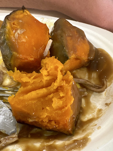 We dined in today. A chicken bacon burger ordered for my son. Quick service. He was super happy. I, myself ordered a small dinner. I don’t eat much and was happy to pay the small price. I said a small bit of roast pumpkin, got ignored and was given three big pieces, which I might add was not cooked properly and was rock hard. Asked for a small amount of potato bake and was given a huge spoonful. Then to make matters worse I added pork. Now I know these food court places need to move quickly but at this time I was the only one being served. He placed the meat on top of the pumpkin and potato bake. Then Drowned it in gravy. Added apple sauce. Luckily I got in there and asked for it on the side. My meal looked like a technicolor yawn by the time it was handed to me. Would it be too much to place everything nicely on the plate? Seperate the potato bake so it’s not contaminated with a shit load of gravy? Ending on a positive the food did taste nice (except...