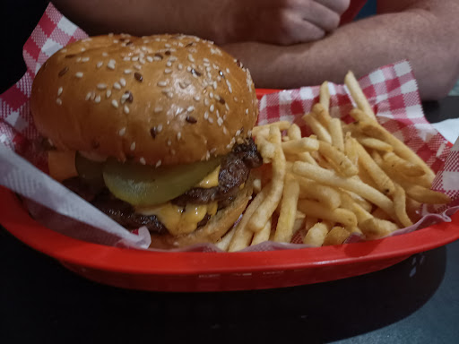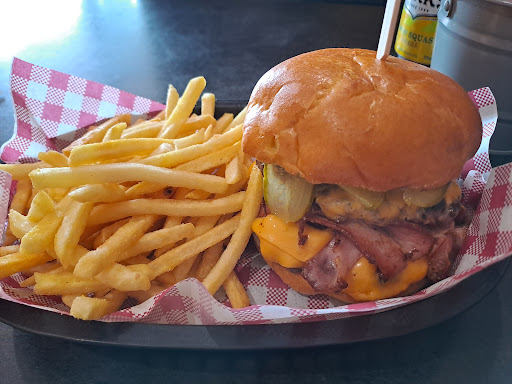 Read moreThe booth seats (see photos) were hard and uncomfortable. The loud music was heavy metal and would not be to everyone's taste. The walls were decorated with posters of ACDC, the Beetles, Bob Dylan and Bowie yet the music was nothing like that. It was not a comfortable atmosphere for dining in. Service was slow, there were not a lot of customers yet it took 25mins for our order to arrive. The menu had a lot of variety. Food was fresh and tasty and the cheddar they've sourced is amazing, but the burgers needed something more. I had the Whole Slayer, (spicy burger). It was the perfect amount of chilli, hot but not overpowering however the burger as a whole was a bit bland. The aioli tasted like plain mayo, it needed some more herbs for flavour. I don't think lettuce is a good idea in the burger as it waters down the spice. Onion rings and chips (shoestring fries) were good but nothing unique, with just...