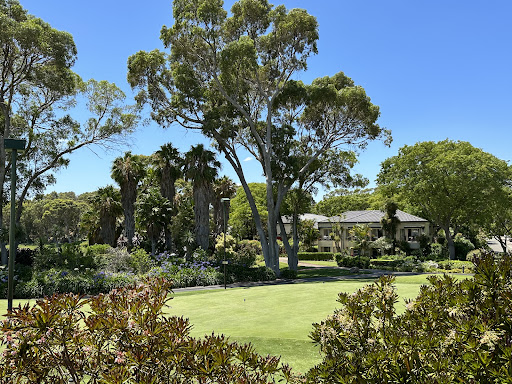 The most gorgeous setting. Golf course and beautiful trees & garden to look at while cafe dining or simply enjoying a beverage. Aside from generally enjoying the company of another at my table, I enjoy the sounds of numerous birds, who obviously enjoy the environment as well. Don't always see them, but love listening to their calls & songs. For this reason I often like to come here earlier than my companions, just to bask in the tranquility. Naturally when it's at peak lunch time, not such an audible treat, but still a blessing to the eyes. Very spacious and open venue. Food meets most palate expectations, but as with most cafes the majority of lunches served have an abundance of carbohydrates , which personally doesn't help me. But my accompanying friend loved her light lunch, while I thoroughly enjoyed a couple of coffees & her pleasant company. Recommend this as a beautiful chance from the sea views & the four walled cafe of noise. No noticeable air-conditioning, but veranda ceiling fans & a seat in the shade...