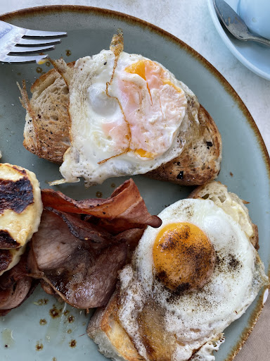 Read moreSomeone recommended this place for breakfast so we were expecting something good. Table was dirty and looked like it hadn’t been cleaned for days as there was dust in the dirt. There was a discarded cloth mask on the floor under our table. Cutlery looked like it had been cleaned in dirty water and had fingerprints all over it. I usually have bacon and eggs on toast but they only had eggs on toast @ $14.50 and it was an extra $6 for the bacon as extra 😳 so over $20 for just bacon and eggs on toast. We asked for runny eggs and crispy bacon as I’m not keen on bacon rind. When it arrived it looked awful, bacon was absolutely nuked and just broke into fragments when you tried to put a fork into it. One eggs was runny and the other was broken and firm and hidden under the top egg, both eggs had dry brittle edges. The only saving grace was the extra Haloumi I ordered(also $6!) Definitely won’t be eating here again. Looks like they have too many tables to look after and can’t cope with the amount of cooking having to prepare. Very...