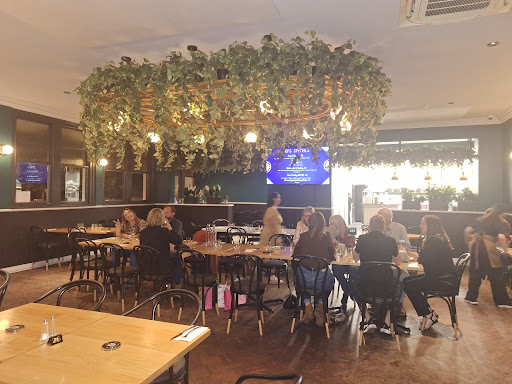 Large, modern venue offering upmarket comfort eats in a colourful space with sports.