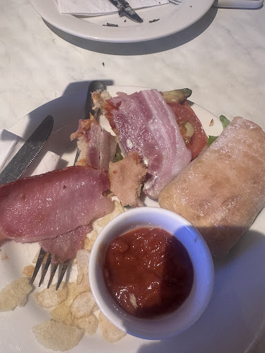 On to the bit of food we ordered. Smoked Salmon Benedict looks terrific and appetising in the menu but the photo didn’t match up with reality. The bread was old and took an effort for the metal knife to cut through! The smoked salmon - talk about cost cutting! It was one veneer, the term “slice” would be too generous. It was one veneer you could see through. The photograph showed several slices. Guys, you have a whole lot competitors across the road and you’ve lost me to them. Beautiful old building and that’s it. Shame really.