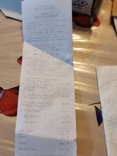 Itâs sad, as this Dominoâs used to be pretty decent. One of the better ones out there. Not sure where that Kiwi guy went, but he was great, and also had great customer service. Actually, more than just sad. Itâs yet another store thatâs been taken over by people who just donât care at all.