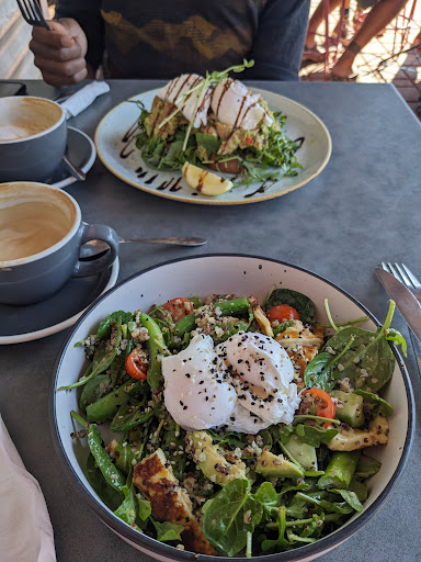 The Spanish beans were sensational. Poached eggs cooked to perfection. My partner's popcorn fritters were a welcomed twist on what we expected, coming out as 4 round pieces and presently simply beautifully on quality crockery.