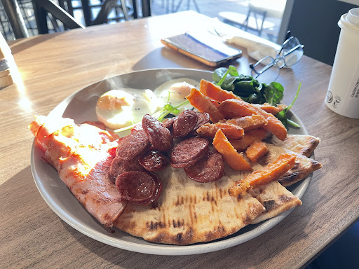 Discovered this place when we were heading towards another cafe in the same complex and decided to give it a go. Cannot be happier with the new choice. Sufficient parking outside, neat and tidy dining area. Staff at counter was very friendly and gave a great vibe for the overall experience. We ordered a Full Greco on a Pan to share as we donât normally eat much for breakfast and a coffee each. Good portion for the serving size and coffee had great taste but temperature was too cold for my liking. Next time Iâll have to remember to ask for extra hot (hopefully it wonât have burnt coffee taste). We asked for coffee to be in takeaway cups and the cup is just super adorable, weâd come back for more just because of it. Staff came to lower the blind slightly so the sun wasnât in our eyes which is very observant and...