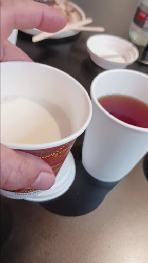 We also ordered an English breakfast tea, which was served in a polystyrene cup. Even the milk came in its own little polystyrene cup. For a café attached to such a beautiful, modern museum, it felt cheap and out of place. No proper mug, no tray, nothing resembling a decent café experience.
