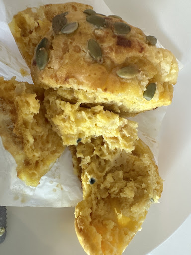 I bought 2 pumpkin and feta muffins for take away for me & my15 months baby just an hour ago, My babe took few bites and I had the feeling that the muffins taste bad because she was refusing to eat. After that I sliced it as the attached picture and I found mould inside the muffins.