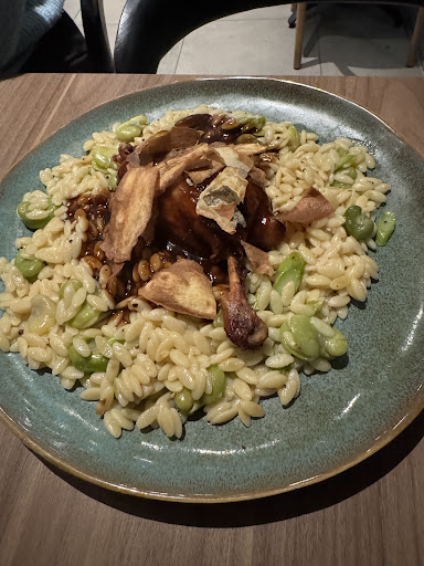 Read moreEntre: Salt & Pepper squid 3/5. Needed a bit more seasoning and definitely not fresh clearly frozen. Main: Rib eye (medium) with mash potatoes, broccolini and red wine jus 2/5. Incorrect order was served, wait staff were very polite, understanding and apologetic, rib eye was cooked medium but strangely and somehow was very dry, wasn't enough red wine jus on the plate was lacking in flavour could do with fortifying, mashed potatoes were dry and had a slightly sweet flavour which was odd, broccoli was fresh and cooked perfectly. Desert: Peach and frangipani tart 2/5. Single serve tart instead of a slice which is fine but the base and sides of the tart were too thick with my spoon slamming through the crust onto the plate quite loudly (serve with a fork?) with the base being so thick and sugary it overpowered the delicate flavour of pear to a point where the only give away that I was eating a pear tart were the few slices found in the middle, this also drowned out any frangipani flavour (if any). Atmosphere: 2/5 Brightly lit space (too bright), very open space no room for intimacy or privacy, clean and fresh but siding more on the clinical/hospital vibe, music was shocking, too loud and poor choice of music (2010 party/clubbing pop anthems) Hospitality: 3/5 Welcoming and friendly wait staff, some confusion with the main course and sides but more of a management problem if anything, was offered a glass of water at the start but then had to ask for another after the main, offer a bottle for the table perhaps? Lastly, I would suggest serving a fork with...