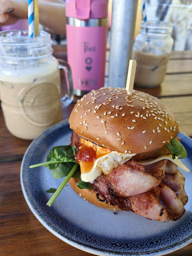 Ā Ā Ā Read moreWe were visiting the area and stumbled upon Falcon Bay Beach Cafe for breakfast and we're so glad we did! What a fantastic place! Very dog friendly, with picnic benches down one side of the cafe's exterior and a huge dog mural painted on the wall. There is a puppuccino on the menu for dogs, and a babycino for kids so no-one feels left out. There are highchairs available if required. The breakfast menu was bigger than expected and there were some kids options available. There was also a chiller of baked goods available. The breakfasts were HUGE. I had the Mushroom Bruschetta and it was fantastic. My partner had the burger and he said it was delicious too. The coffees were great too. The location is opposite the beach and a playground too so it's great...
