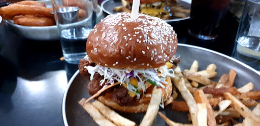 Food. Had the Bullitt burger and it was delicious!! Definitely a winner. My partner had the Larry Bird chicken sandwich and that was asking too, so top marks on food, and it came out quickly too. Will definitely come back to try more on the menu.