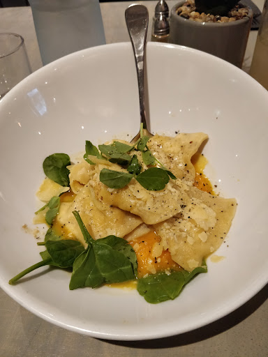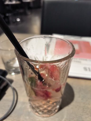 I didn't realise this was part of a Hotel but that didn't mean anything other than, Hotel menus are usually obnoxiously expensive with little imagination unless it's a Four/Five star. I was pleasantly surprised by what it had to offer and at reasonable prices. I ordered an entree, )salt n pepper squid - no salt or pepper so disappointed because that's why I buy it), main and cocktail all for $76 and was happy. My entree actually came before my drink and it was relatively quick to arrive. I don't think I waited 10mins for it to arrive. Was nice and didn't "wow" me but still it was nice. If you like plain aioli with squid then you'll like this. My main was 350gm Sirloin with chips, garden Salad and caramelised onion and garlic & herb butter on the steak. My salad was what you get out of a packet with one cherry tomato, although I found a sliver of capsicum (only 1) and some, few, red onion slices. So that was disappointing. The dressing was nice. My steak (med-rare) was absolutely delicious coupled with the caramelised onion (I don't normally eat cooked onion even caramelised but I did this time) it was bloody lovely and the butter made it that much more nice and flavorful. My pink Gin strawberry smash cocktail was bloody delicious too. The place is quite stark in terms of furnishings and arrangement. It doesn't evoke that sense of warmth or even comfort, it was "clinical". Overall though it was nice and I would go back. Btw, I started eating before I remembered...