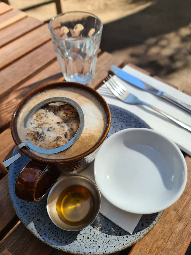 First thought was lovely cafe in the middle of the bush. Was told our table was just near the door and was handed a bunch of menu's and sat ourselves. As we were seating we were told to go up and order at the counter once we had decided. Luckily we were at the closest table to reception because if you were around the corner or at another table you were handed menus at the front and told your table number that you then had to go and find yourself.