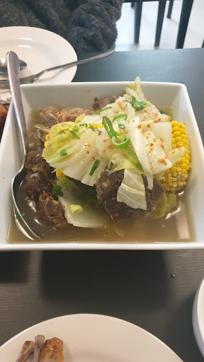 It does "hot food" - burgers, fish and chips, etc - and also a range of Filipino foods. Most importantly this is VERY INEXPENSIVE and super generous Filipino food. We got a silog and a "bento" and both were very good. Only complaint was that the garlic rice wasn't super garlicky. But everything else (lechon kawali and chicken inasal (weekends only)) were very nice, as was the salad and soup provided.