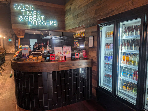 Read moreKids always love going here. Was a Friday night but wow, the queue!!! You need to have plenty of time generally to grab burgers from here. We were just passing by so stopped in. Big mistake, as waited nearly 40mins & was only 2 kids burgers & chips. 1 burger ordered with nI sayce ended uo with sauce. Oh well, wasn't queuing up again, just made them eat it with half bun! Kitchen staff not in any hurry & seems a very social place to work. Staff are friendly. Good place to go with a crowd, like uni students. Some long bench seating areas & you n pay separately when ordering. Can buy alcohol...