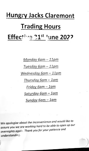 Read moreNot usually one to review publicly however for the sake of others I feel this experience required review. Firstly I must comment on the ridiculous wait times (indicative of severely short staff) - this evening I waited 20 minutes to even have my order heard. I have waited longer about a month ago and assumed this was a once-off with COVID affected staff etc yet it appears new management are so focussed on the bottom line they are showing complete disregard for customer experience and staffing as lean as possible. This follows into my second point of staff attitude - I placed a very basic order only to be met with a smaller sized chips than ordered, 11 nuggets instead of twelve along with a double burger provided instead of a triple. Rather than simply acknowledging her mistake, the server proceeded to mock the mistakes and rather scrutinise me for even checking my food in the first place (I shouldn’t have even needed to check the quantities I ordered and paid for…). Once the revised order arrived I was again met with attitude for checking my order, summing up an experience that has not only resulted in my last visit to Hungry Jacks Claremont yet also my last visit to the Hungry Jacks franchise. I’m sorry Hungry Jacks - I have been a long term customer for multiple years and am sad to see the end of what used to be a successful Claremont branch but as a result of blatant poor management I have no choice. I hope this notice serves as a warning to others - vote with your feet. One day I may return when it becomes apparent the management has changed and a customer focus has returned yet by tonight’s experience I fear this day may be a long time coming…until then I am just glad I...