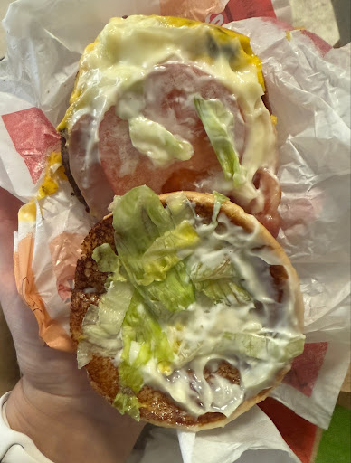 Service from the boy on drive thru was awful, didn’t repeat my order either time back to me; upon ordering or at the window. Didn’t greet me at all, only stuck his arm out with the eftpos machine when I reached the window. Receiving my order at the next window appeared to be the manager as she was older and wearing different uniform than the boy. Again, didn’t state my order and just stuck her arm out. No smile, no have a nice day, nothing. Got home and opened my bacon deluxe to realise the state of it. Bundled it right back up and threw it in the bin. I ordered it EXTRA LETTUCE and paid the additional 25c for it too. Order was definitely correct as it had the “H” marked for Heavy on the wrapper and I was charged 10.85, rather than the standard 10.60 for a bacon deluxe (indicated in the photos). Appalling that I pay extra for it to have not only no extra lettuce (hardly fulfilling the amount it should contain normally), but contain twice the amount of mayonnaise it should! Sloppy mess.