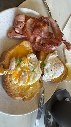 For breakfast, we ordered eggs and bacon on sourdough toast. While the meal was adequately prepared, it lacked distinctive flavor or presentation to set it apart from standard café offerings.