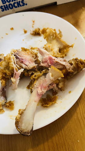 The chicken is still bleeding. The outside of the chicken wasnāt fully cooked. It seems they are rushing the food even though there isnāt much business.