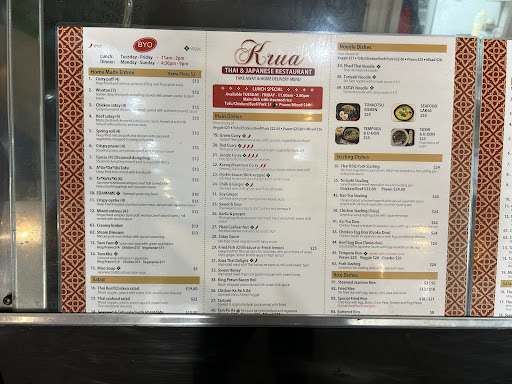 We ordered 5x mixed entree, as per usual we ordered the sushi, sashimi combination large sized priced at $40 and as it is pictured on the menu it’s all placed into a very nice platter but we received 2 platters between the sashimi and tuna/snapper sushi when it’s meant to include snapper. The sushi rice was wet and mashed. California roll 10pc ordered on top, didn’t even show up til we reminded them and it was poorly made also mashed wet rice. Our 2 daughters received their crispy chicken bento’s - very nice chicken, average rice/pad Thai noodles/same poorly made sushi, and burnt tempura vegetables. My husband and son ordered the Chicken Katsu Sizzling where the chicken was under-sauced and dry and the veg used for the stir fry had clumps of what would have been wilted old (not fresh) bok choy styled veg throughout. Lastly, the worst part was the pad Thai noodles (chicken) came out announced as Satay Chicken Noodles and I said back to the server no, Pad Thai Chicken. We did this 3 times. She then said she would check and went back to the kitchen with said noodles. She came back and then said yes they are Pad Thai noodles. My husband pointed out the veg - the whole dish looked like chicken and veg noodles. I tasted one small mouthful and just with the noodle on my tongue it was indeed simply chicken and veg with rice noodles. We called to the server and said this is not pad Thai. This is where the debate started. Yes - no - yes - no. Another person was brought out of the kitchen, I asked her, how was it made? Everything she said described chicken and veg - we’re talking about broccoli, cauliflower, and various other vegetables with soy, chicken and noodles. Altogether NOT Pad Thai. I explained we had been coming to Krua for nearly 2 years and this was not how they had previously made it. I explained to her how it’s meant to have tamarind, palm sugar, coriander, chilli, bean sprouts, tofu, egg and she said oh that’s not how we make it. I said but that’s the general basis of a Pad Thai sauce and we have eaten it many places and restaurants including Krua previously. She said that’s just not how we make it, I said I’m not arguing or trying to argue with you it’s just simply not Pad Thai and I’m not paying for what I didn’t ask for. She conceded that as a fair ask and left with the plate. To be honest the service plummeted from there and we even heard really loud uncontrollable coughing coming from the kitchen. Overall, we have been bringing them good money for their service, tonight they lost a family of 5 that would normally pay between $190-$250. Truly poor on all fronts. The service, the food, the taste, the heart. I don’t recommend if you truly enjoy your Japanese...